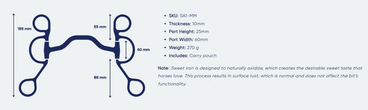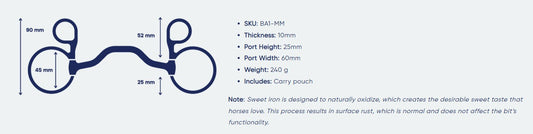 Cavalon Short Shank Low Port Mullen Sweet Iron Curb