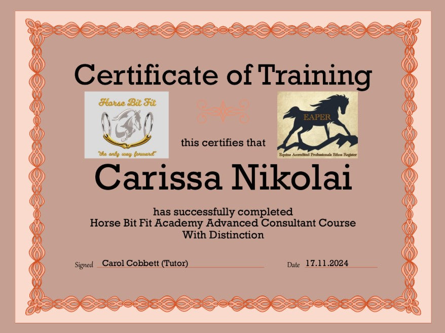 Carissa is now a LANTRA-certified Bit and Bridle fitter through a program called Horse Bit Fit, based in the UK. There is currently no education or certification based in North America.